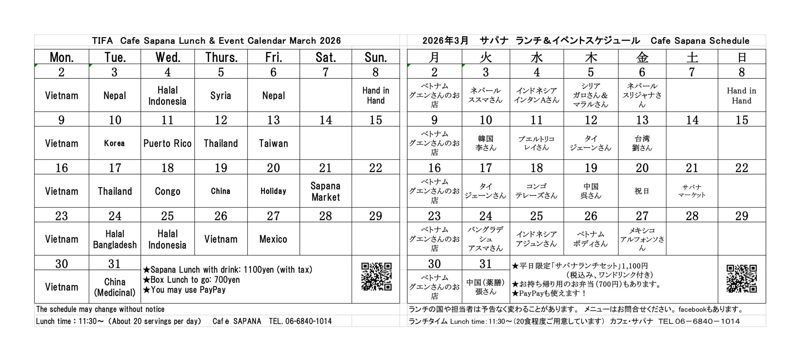 いつも、カフェ・サパナをご利用いただきありがとうございます!